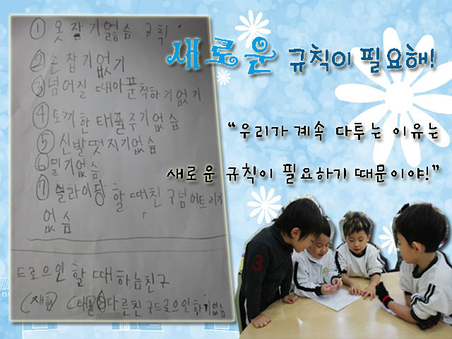 유아1: 아! 그리고 우리 축구할 때 자꾸 자꾸 다투니까 규칙도 만들면 좋겠다.