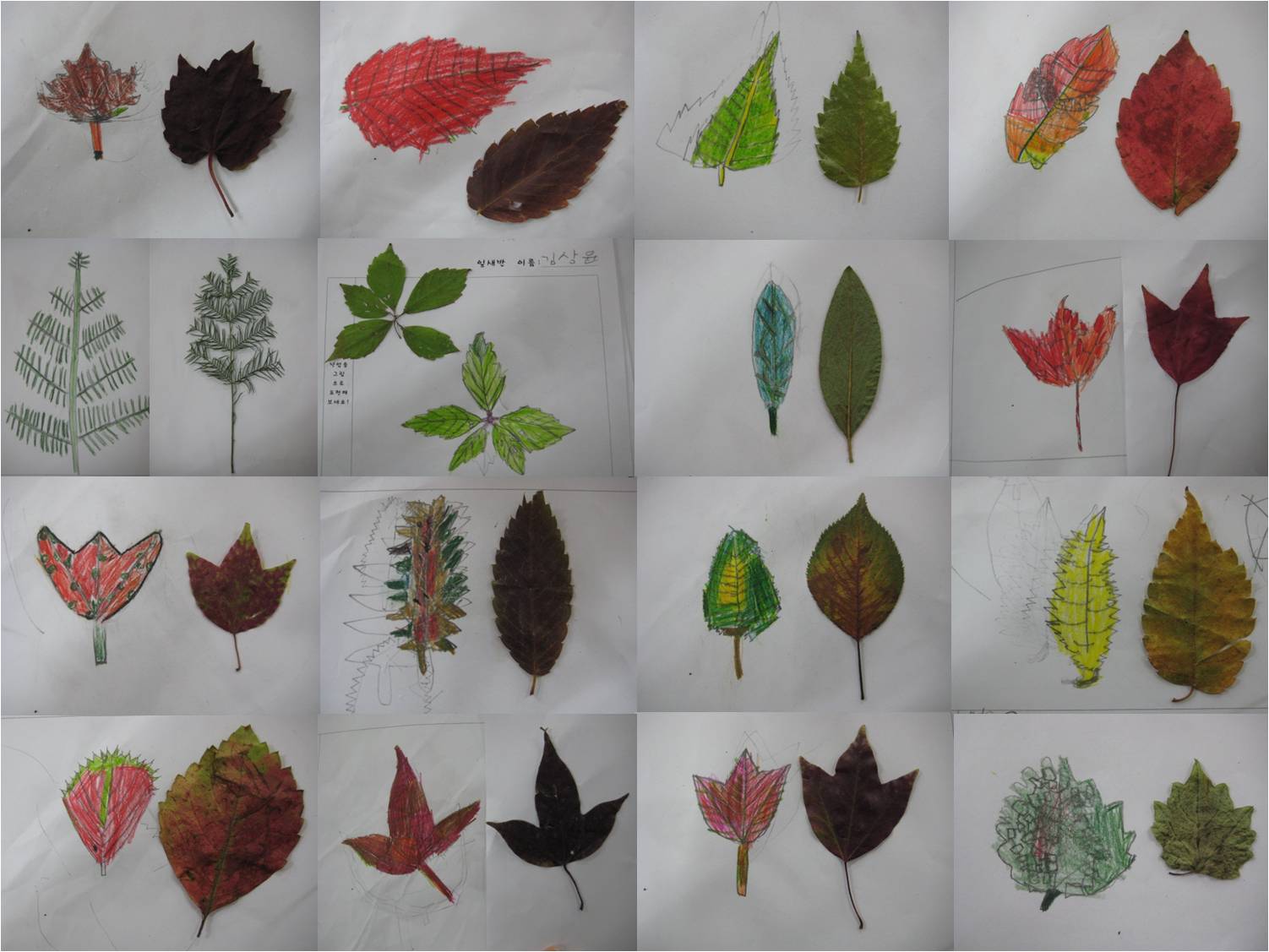 연필로 나뭇잎의 형태를 표상한 후, 색연필을 이용해 유사한 색을 칠해 봅니다.
