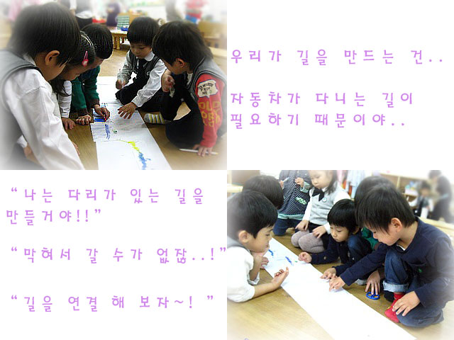 유아들은 자동차가 다니는 멋진 길을 그림으로 표현 해 보며 하나하나 구체화 시켜 나갑니다.