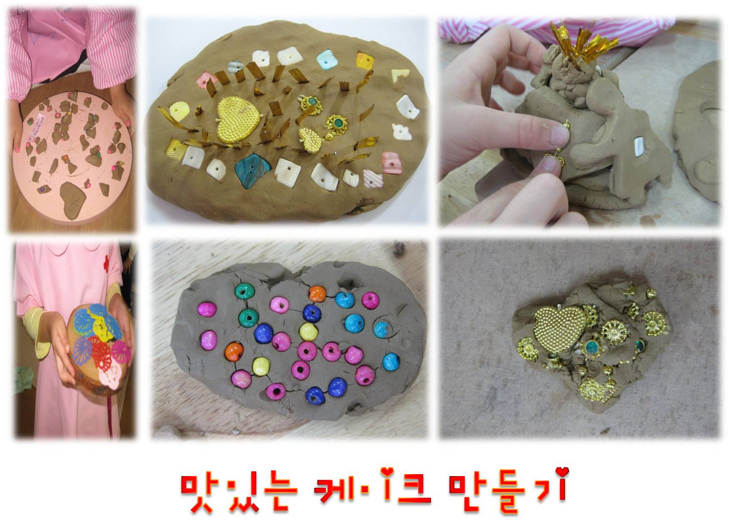 도예영역에서 찰흙과 다양한 구슬들이 만나 맛있는 케이크가 만들어 집니다.