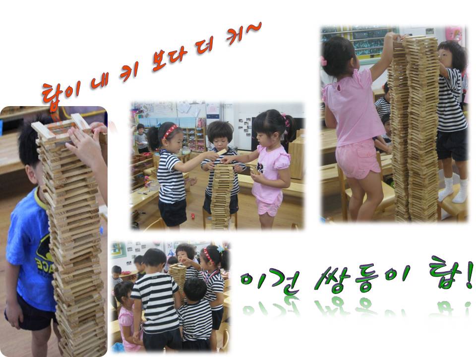 유아1: 조금만 더 쌓으면 우리 키보다 더 크겠다~