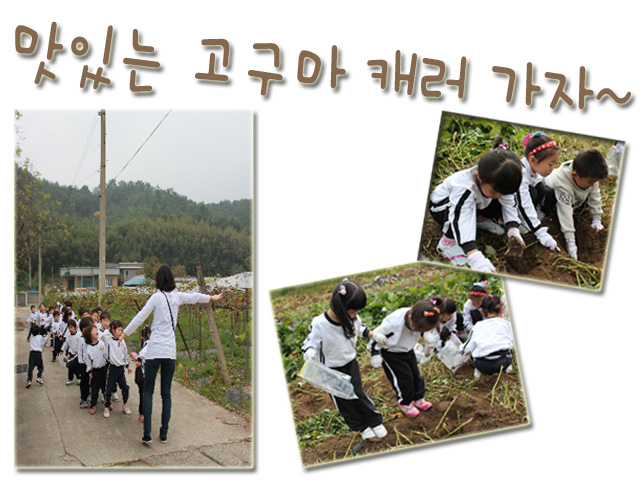 -고사리 같은 손으로 직접 고구마를 캔 우리 아이들, 우리가 함께 캤기 때문에 더 맛있을 것이라고 합니다. 고구마 밭에서 자연을 체험한 우리 친구들~ 우리는 이번 체험활동에서 고구마뿐만이 아니라 추억도 함께 캐고 왔답니다.