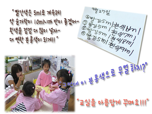유아6: 그럼 점점 연한 분홍색이 되겠네?
