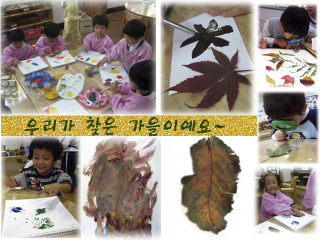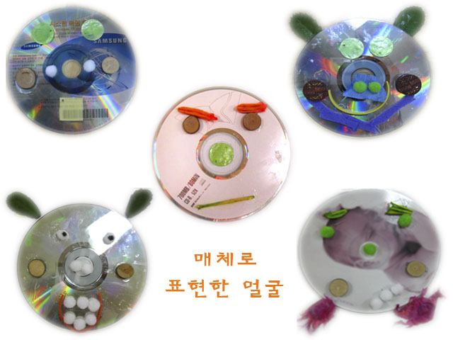 유아들은 CD를 얼굴로 생각하고 얼굴에 있는 이목구비를 그와 비슷한 매체물을 찾아 구성 해 나갑니다. 이러한 과정속에서 내 얼굴의 섬세한 부분가지 관심을가지게 되고 친구의 생각이 덧 붙여져 더 멋진 얼굴이 완성 되어 간다는 것을 느낌니다.<가을을 찾아서!>