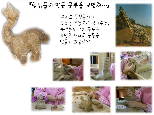 도예영역에서 찰흙으로 공룡을 만들면서 이야기를 나누어 보았습니다.