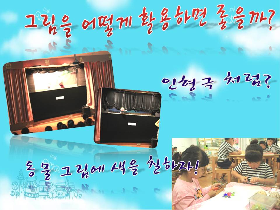 강당에서 봤던 것 처럼 동물그림으로 인형극을 하면 되잖아요~