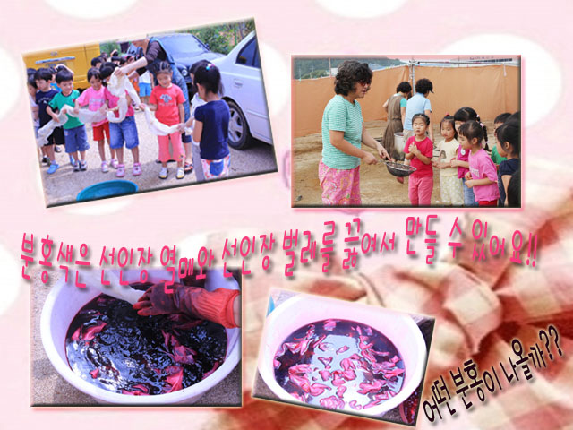- 이렇게 우리 꽃잎반의 추억이 담긴 분홍색이 또 하나 완성되었습니다. 꽃잎반 친구들은 새로운 분홍색 천을 어떻게 활용하게 될까요? 꽃잎반의 분홍! 앞으로도 꽃잎반을 채워나갈 다양한 분홍색을 기다리는 아이들의 눈망울이 별처럼 빛나고 있답니다~