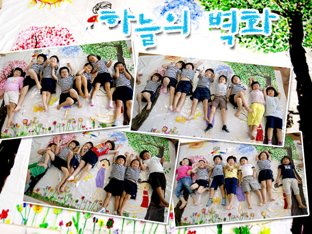 많은 양을 한꺼번에 한 것은 아니었지만 우리가 조금씩 꾸준히 하다 보니 어느 새 하늘반의 벽화가 완성되었습니다.