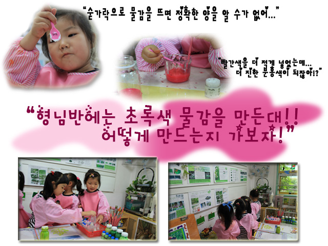 유아4: 형님반에는 초록색 물감 만들던데... 우리가 가서 한 번 물어봐요.