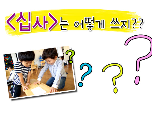 그런데 이렇게 놀이하던 어린이들에게 한 가지 질문이 생겼습니다. <십>은 <10>, <사>는 <4>라고 쓸 수 있는데 도대체 <십사>는 어떻게 쓰는 걸까요? “1하고 4를 붙여서 14라고 쓰지.”라고 정답을 알려줄 수 있지만 수 쓰기에 관심을 보이는 어린이들이 자릿수에 대해 이야기 나눌 것이라 생각하여 어린이들에게 질문해 보았습니다.