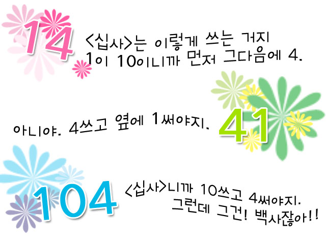 “1이 앞에 있으면 그거는 <십>이고 1이 뒤에 있으면 그건 <일>이지!”