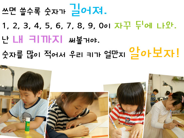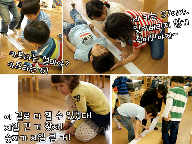 숫자가 길어질수록 종이도 길어지고.. 어린이들은 무언가 발견한 듯 소리칩니다.