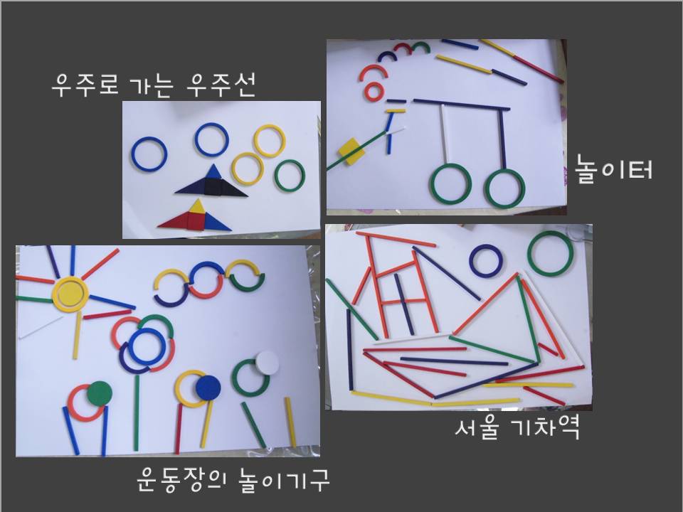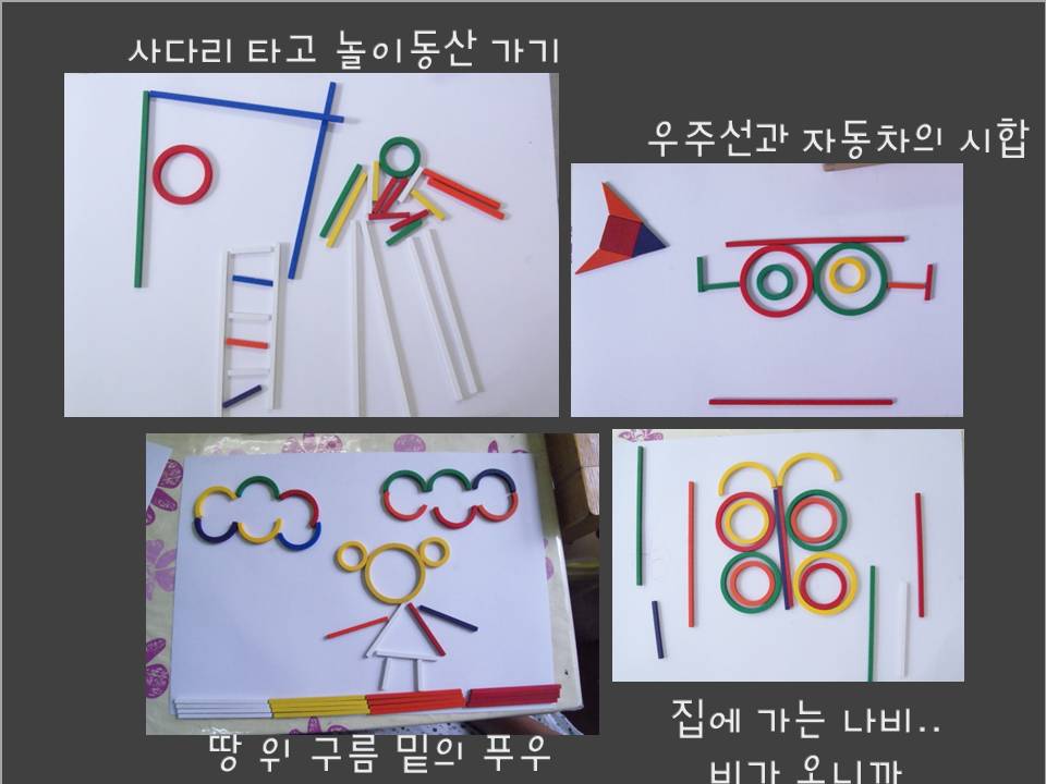 크레파스, 색연필이 아닌 가베로 내 생각을 표현해 보았어요. “그림그리기 같기도 하고 꾸미기 같기도 해”