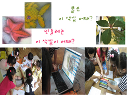 친구들은 동화책의 그림 중에서, 또 실제 꽃과 잎을 관찰하면서 민들레와 풀에 어울리는 색을 찾습니다. 친구들이 사용하기 쉬운 색연필을 이용해 색칠해 보고, 포토샵이라는 전문적인 도구를 다루어 보면서 <색을 입힐 수 있는 다양한 방법>을 경험합니다. 동화책 완성에 조금씩 조금씩 가까워지면서 친구들의 기대감은 더욱 더 커져갑니다.#<카프라 탑>팀의 탑 쌓기는 계속됩니다. 방학이 끝나고 난 후, 탑의 모양은 더욱 더 다양해 졌습니다. 아이들은 이제 높이 쌓는 것이 아닌, 멋진 모양이나 아무도 생각하지 못했던 탑을 쌓는 것에 더 관심을 가집니다.