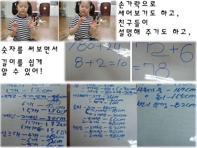 카프라를 이리저리 놓으면서 만들어지는 다양한 모양을 발견하고, 그것을 친구들과 공유하면서 좀 더 멋진 탑에 가까워지기 위해 끊임없이 시도하는 <카프라탑>친구들입니다.# <행복한집> 팀이 길이를 재면서 다양한 방법들을 친구들과 함께 알아보았습니다.
