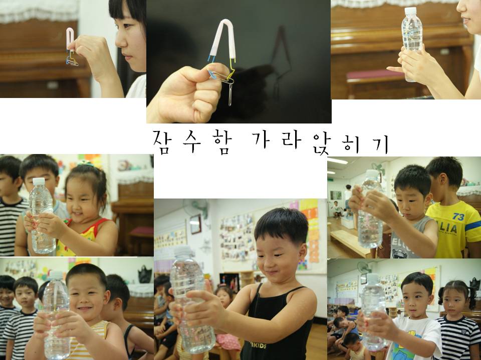 PT병 안에 떠있던 잠수함은 손으로 병을 꾹 누르자 아래로 쑥 내려갑니다. “어? 왜 가라앉아?