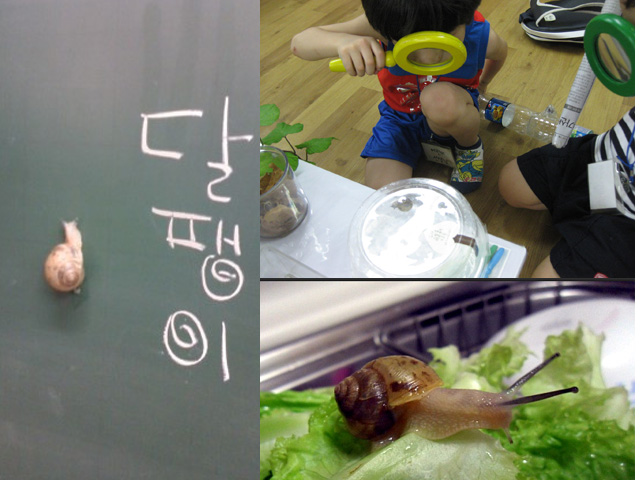 “어? 달팽이 밥이 없잖아?” “달팽이는 뭐먹고 살지?” “달팽이는 달팽이 밥 먹고 살지~” “아니다. 풀 먹고 살아.”새싹이들과 함께 키우는 달팽이이야기 기대해 주세요.
