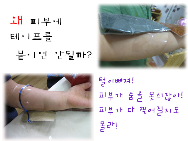 교사: 우리 몸에 테이프를 붙이면 어떻게 될까?
