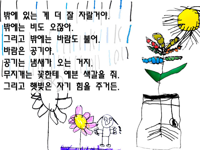 “밖에 있으면 비를 많이 맞으니까 잘 자랄 수 있어.”