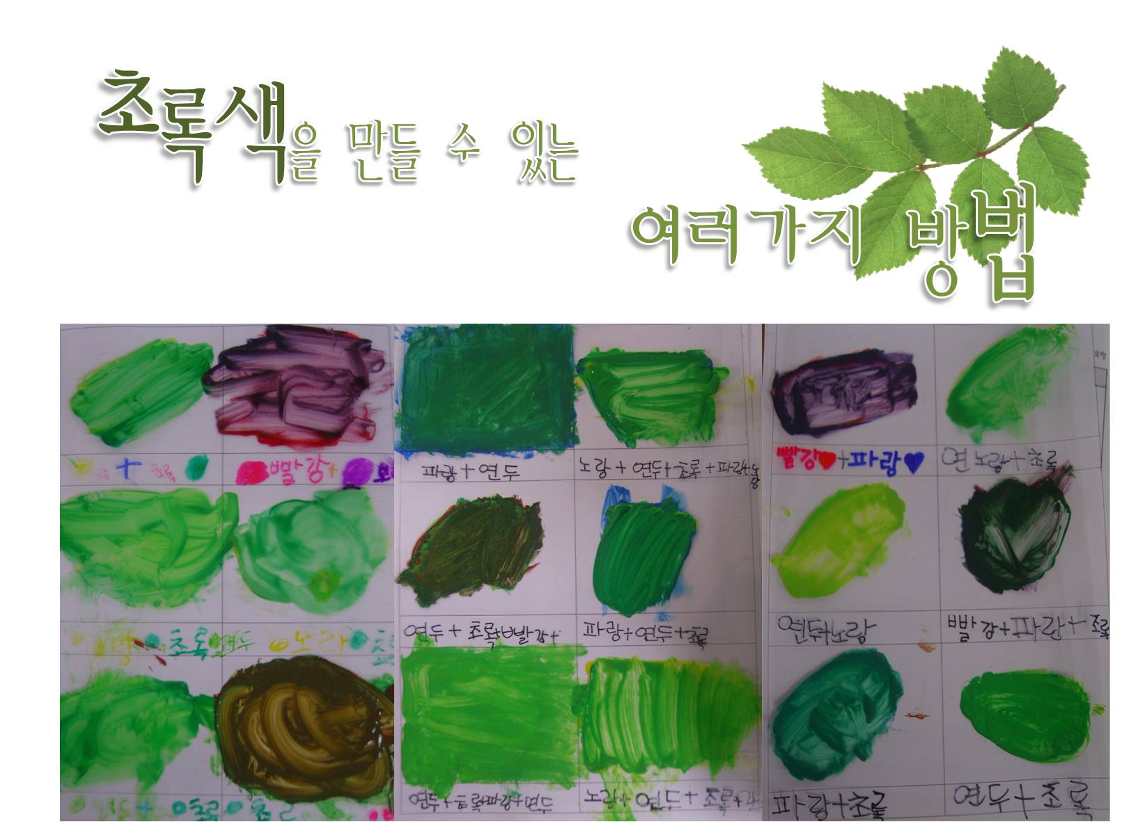 "색은 만들었는데 무슨 색이랑 무슨 색을 섞어 이 초록색을 만들었는지 모르겠어요." 유아들은 여러 시도 끝에 초록 계열의 색을 만들었지만 어떤 색과 어떤 색을 섞어 나온 것인지 알 수 없다는 문제점에 부딪힙니다. 이에 교사는 유아들에게 어떤 색을 섞어 다양한 초록색을 만든 것인지 기록으로 남길 수 있도록 투명한 필름지에 표를 만들어 지원합니다. 그러면서 유아들은 초록색을 변화시킬 수 있는 다양한 변인들을 고려하며 좀 더 다양한 초록 계열의 색 만들기를 시도하게 됩니다. 다양한 초록색을 만드는 과정 속에서 유아들은 또 어떤 점에 호기심을 느끼고 탐색해 나가게 될까요?
