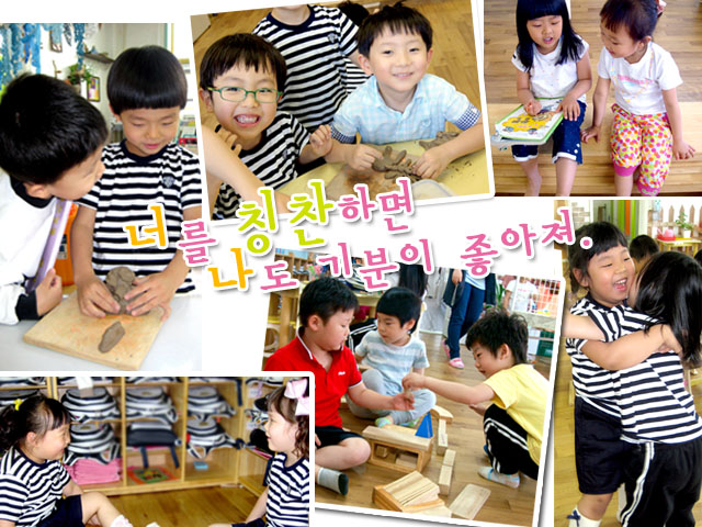 언젠가부터 어린이들에게서 가장 많이 듣는 이야기 중 하나가 누군가를 이르는 것입니다. “선생님! 얘가 내가 만든 거 부셨어요.” “얘가 나 때렸어요.” “누가 내꺼 뺏어갔어요.” 한 번 시작된 이러한 말들은 친구가 조금만 스쳐도 ‘때렸어요’가 되고, 들여다보기만 해도 ‘뺏었어요’가 됩니다. 이렇게 누군가를 이른다는 것은 서로가 단점만을 바라본다는 것을 의미합니다. 어느새 서로의 단점만을 찾는 어린이들을 발견하고 어떻게 하면 서로의 장점을 볼 수 있을까 하고 고민하던 중 저희는 ‘칭찬’을 생각 해 내었습니다. <칭찬은 고래도 춤추게 한다>는 말이 있죠. 칭찬은 하는 사람도 받는 사람도 모두 행복하게 해줄 좋은 방법이라 생각하고 어린이들과 칭찬에 대한 이야기를 나눠보았습니다.하루가 시작될 때 하늘반 모두를 칭찬하고 하루가 끝날 때 놀이를 하면서 보았던 친구의 멋진 모습들을 기억하여 서로를 칭찬합니다. 처음엔 낯설어 하던 어린이들도 시간이 지나자 스스로 친구의 장점을 찾아내기 시작합니다. “친구가 정리정돈 잘 하는 거 봤어요.” “친구가 나무블록을 빌려줬어요. 그래서 내가 고마워했어요!” “나도 칭찬하고 싶다~” “너는 친구랑 사이좋게 지낸다~” 칭찬하기를 한 후 조그만 변화가 있다면, 친구를 이르려던 시선이 조금은 서로의 장점을 바라보는 것으로 변화하였다는 것입니다. 이렇게 어린이들의 칭찬이 모이고 모이면 하늘반에는 서로의 웃음소리만 가득하게 되겠지요. 앞으로 칭찬을 하는 방법과 어떤 것을 칭찬할 수 있는지에 대해서도 이야기 나누려 한답니다. 모든 어린이들이 칭찬받는 그날까지 하늘반의 칭찬릴레이는 계속 됩니다. 쭈~~욱★찰흙으로 ‘서 있는 사람’ 만들기★