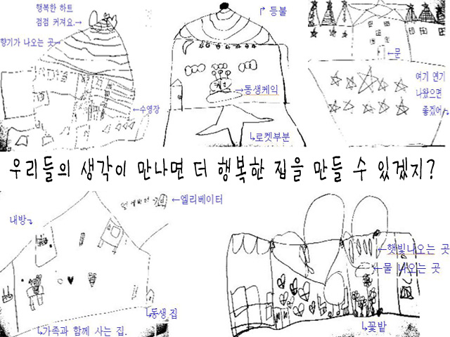 우리 모두의 생각이 담긴 하나의 탑(구성물)을 만드는 것은 불가능할까요?# <행복한 집>팀은 여러 번의 만남 속에서 ‘살고 싶은 집, 행복한 집’을 그려보고 비평적 이야기를 나누어 보았습니다. 친구들이 그린 그림을 보며...