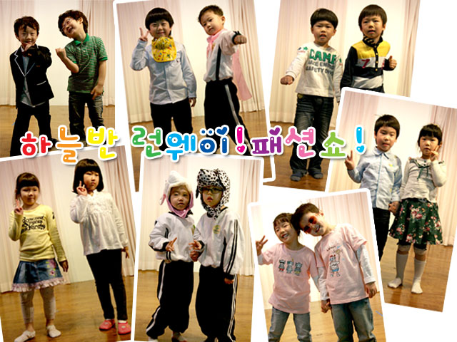 내가 입은 옷을 뽐내기 위해 우리들만의 패션쇼가 열렸습니다. 신나는 음악과 멋진 불빛 그리고 많은 사람들! 정말 패션쇼에 온 것 같았습니다. 처음에 무대에설 때는 조금 부끄럽기도 했지만 많은 친구들과 함께 있으니 자신감을 가질 수 있었습니다. 마치 모델이 된 것처럼 무대 위를 멋지게 걸어보고 자신만의 개성을 살려 포즈도 취해보았습니다. 엉덩이를 흔들기도 하고, 짝꿍과 함께 머리를 맞대어 보기도하고, 멋진 춤을 보여주기도 하였습니다. 무대에 서있는 이 순간만큼은 내가 주인공이 되는 것이지요.