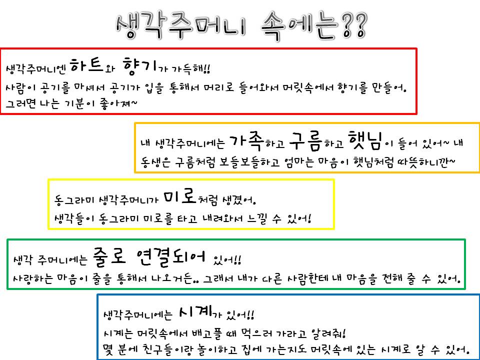 유아1: 생각주머니에는 꽃이 들어 있어서 향기가 가득 차 있는 것 같아~ 꽃향기~