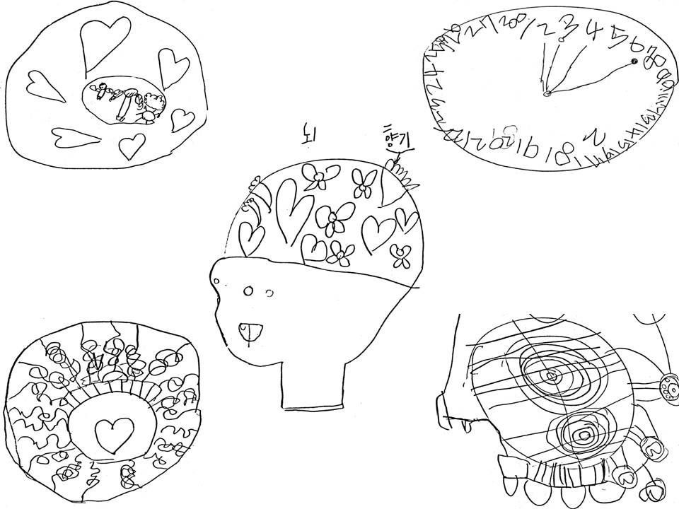 그러면 우리는 그냥 밥을 언제 먹을 건지 잠은 언제 잘 건지 시계가 있기 때문에 느낄 수 있고 알 수 있어. 유아4: 내 생각주머니는 동그랗게 생겼어~ 세모모양이면 찔려서 아플 수 도 있으니깐 동그라미로 생겼어. 그러면 아주 부드럽거든..