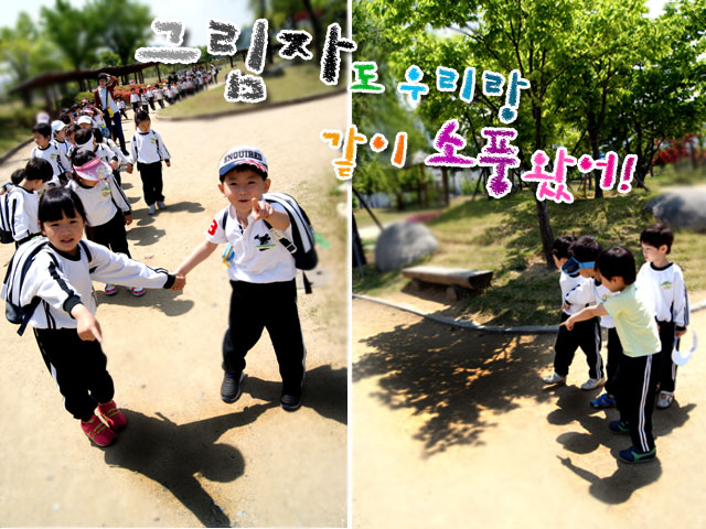 “선생님! 그림자도 있어요. 그림자도 소풍 왔어요.”