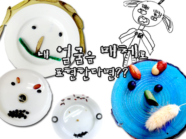 하늘반에는 자신의 얼굴을 탐색하고 다양한 표정과 얼굴의 모습을 그림으로 표상해보는 자화상 영역이 있습니다. 이러한 자화상 영역에 매체를 이용하여 자신을 표현하기를 기대하며 콩, 단추, 마카로니, CD, 아크릴 판, 강아지 풀, 솔방울, 철사, 검정깨, 나뭇가지 등을 지원하게 되었습니다. 어린이들은 자신의 감정을 표현하기에 적합하다고 생각하는 매체를 이용하여 기분이 좋을 때의 얼굴, 화가 났을 때의 얼굴, 자신감이 생겼을 때의 얼굴 등 감정을 담은 얼굴을 표현해봅니다. 다양한 방법으로 감정을 나타내는 과정을 통해 자신을 들여다보고 스스로의 감정을 이해하는 기회가 될 것입니다. 나아가 타인의 감정에 생각해보는 기회가 되지 않을까요?
