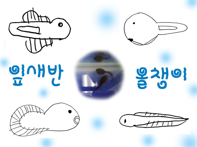그리고 올챙이를 관찰한 후 올챙이의 모습을 그림으로 그리기 시작합니다.