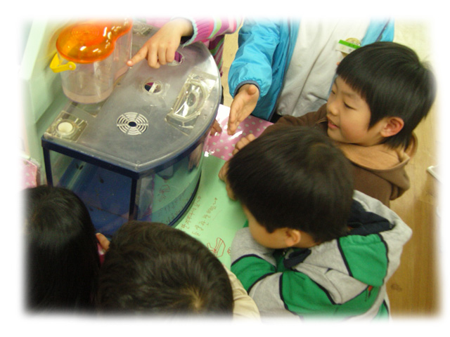 유아5: 선생님 올챙이 꼬리가 빙글빙글해요. 유아6: 올챙이에도 입이 있어요!유아7: 꼬리 지느러미가 투명해요.