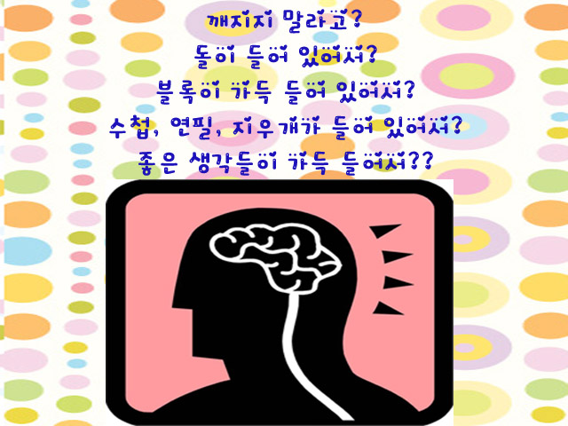 교사: 생각이 차있으면 왜 머리가 딱딱해?