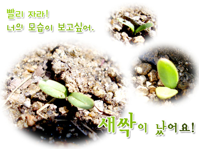 어린이들은 그림자에 검정색을 입힙니다. 그것이 좀 더 그림자스러워지기를 바랬기 때문에 어린이들은 그림자를 그렇게 관찰했었나 봅니다. 벽위에서 보여 지는 그림자 대신 밖에 나가 자연의 빛으로 생긴 그림자를 관찰해 보는 것도 어린이들에게 그림자에 대한 새로운 궁금증을 안겨 주지 않을까요?★싹이 났어요★