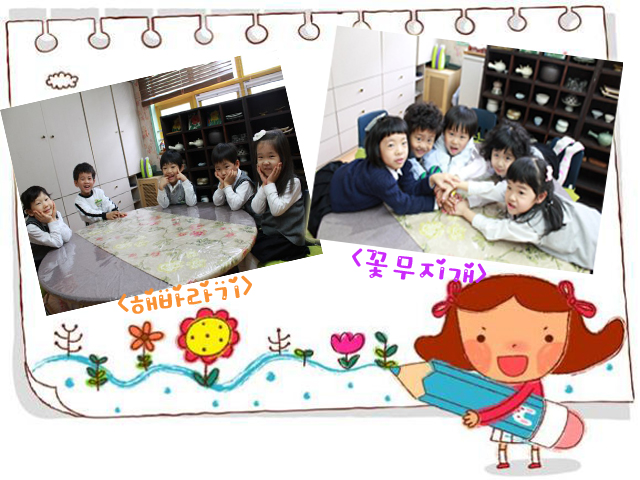 유아들: 좋다, 좋다~우리는 꽃무지개 팀!