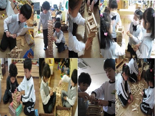 유아 : 쓰러지지 않게 하기 위해서 벽에 다 붙인 것이 아닐까? 유아1: 카프라 탑이 벽에 없고 바닥에 있었으면 친구들이 왔다가갔다 하는데 불편할까봐 벽에다가 쌓은 것 같애. 연석 : 그냥 바닥에 쌓으면 기울어 질수가 있어서.<저 두 탑은 왜 아직 남아있는거지?>