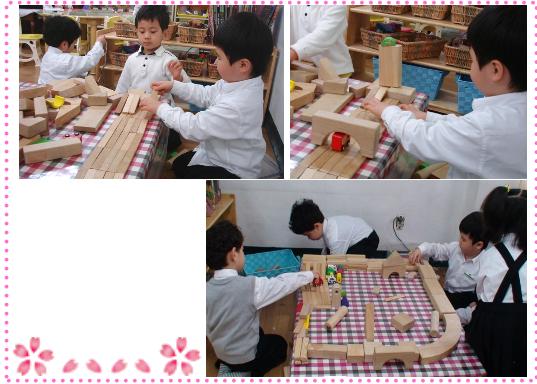 - 아이들은 이전에 만들어 놓은 블럭다리를 중심으로 홈플러스를 만들고 그 주변환경들을 블럭으로 구성해 가기 시작한다.