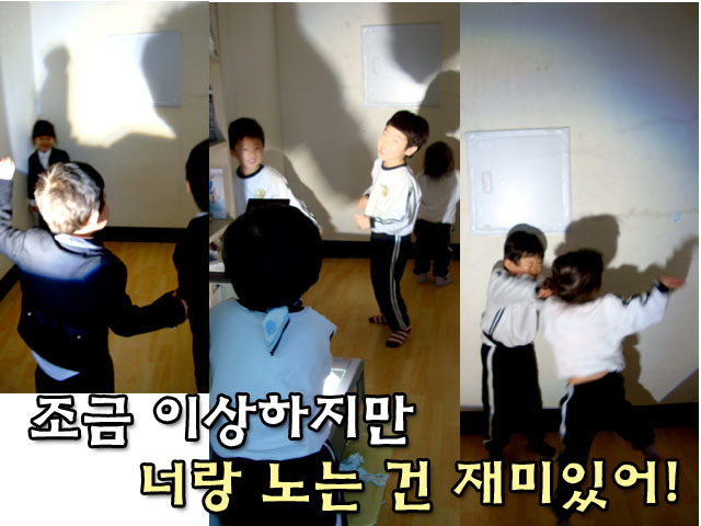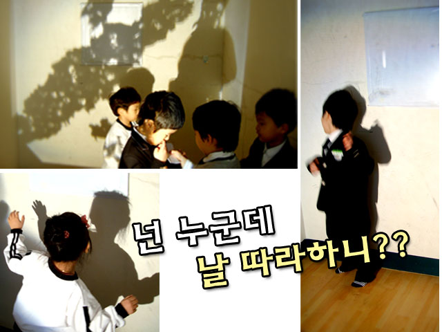 어린이들은 몸으로 부딪혀 빛과 만나고 그림자를 만듭니다. 이러한 어린이들의 놀이는 그림자에 대한 여러 발견을 가능하게 했습니다. 나와 똑같이 생겨서 나를 따라하는 까만 것, 그리고 이상하게도 커졌다 작아졌다하기도 하는 것. 지금 어린이들의 마음속에 있는 그림자에 대한 정의겠지요. “왜 검정색일까?”라는 교사의 질문에 “원래 그래요.”라고 이야기 합니다. 한 번도 왜 그런지에 대한 의문을 품지 않았기 때문에 그것을 당연하다고만 여기고 마는 것이죠. 아이들이 그림자와 놀고 탐색하고 발견해 나가면서 그 모든 특성들 하나하나에 질문을 가질 수 있기를 기대 해 봅니다.