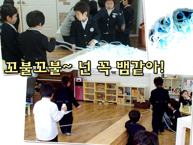 “이거 롤러코스터 길이야.”“줄넘기다!”“낚시줄!” “지렁이 같다~” “꼬마뱀이 기어간다~♬”