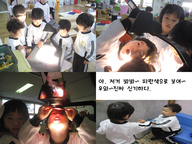 유아5: 야 이것봐라. 초록색으로 보인데~ 한번 봐봐.
