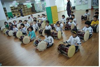 장구소리를 쳐보기도 하고, 들어보기도 하면서 여러 가지 리듬을 흉내 내어 보았답니다.