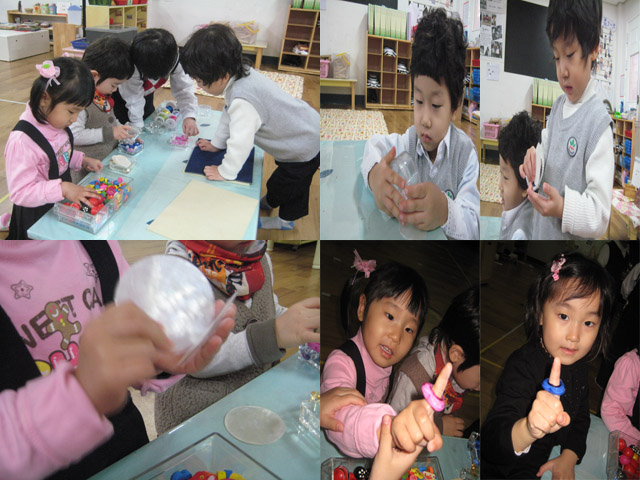 유아들은 새롭게 제공된 <구슬>매체에 관심을 보이기 시작합니다.