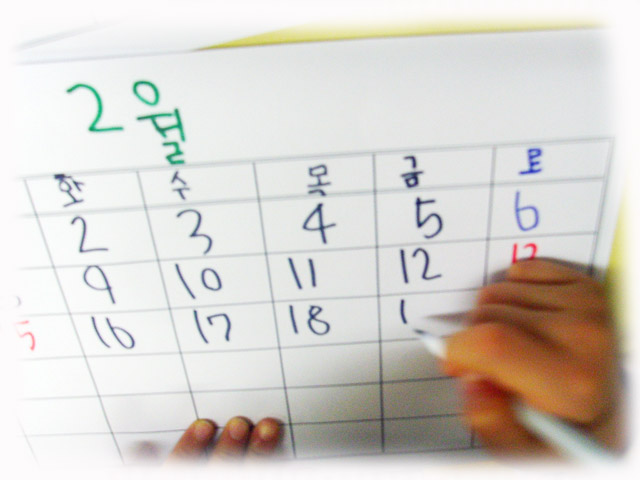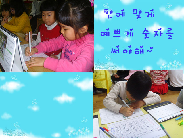 컴퓨터로 그어진 달력의 칸에 아이들이 정성스레 숫자를 써내려 갑니다. 하지만 여전히 달력 만들기는 쉽지만은 않습니다.