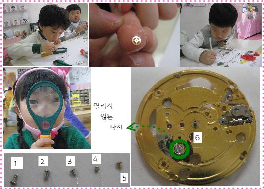 유아2: (시계 속을 보며) 여기에도 톱니바퀴가 있어요. 유아3: 큰 톱니바퀴에요~ 진짜커요!!
