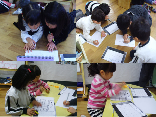 이렇게 하여 새싹반의 2010년도 달력을 만들 수 있게 되었답니다. 그렇게 달력 만들기에 열중하던 아이들이 완성했다며 가져온 달력을 함께 살펴보았답니다.