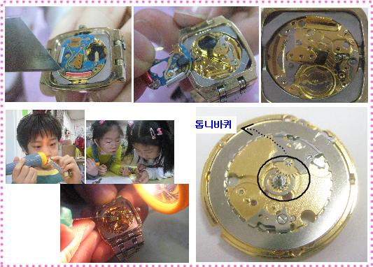 -시계 뒤에 나사가 없자 아이들은 나사를 푸는 드라이버가 아닌 칼을 이용하여 시계를 열어보았답니다.