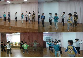 아이들과 함께 동영상을 보며 태권무에 대한 감을 익히고 음악을 결정한 후 음악에 적절한 동작들을 재구성하였습니다.