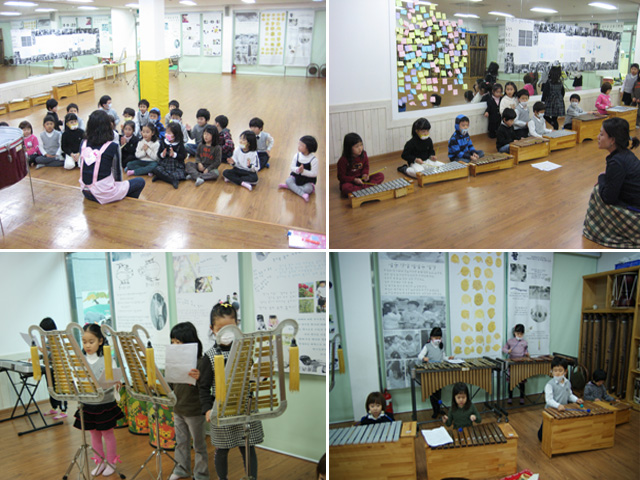 멜로디 팀은 <도도 미미 솔솔 미~> 악보를 받고 열심히 외우고, 타악기 팀은 <쿵 짝짝짝~> 박자를 외우고 있답니다. 처음에는 그저 계이름과 박을 보고 읽기 바빴던 친구들이 조금씩 악기로 표현할 수도 있게 되었답니다. 친구들을 많이 응원해 주세요~< 도대체 왜 그려?? 왜?>