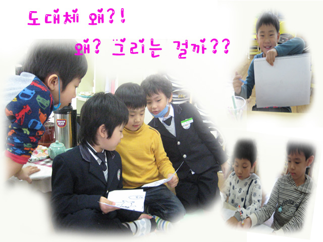 공룡에 이어 디지몬과 포켓몬스터를 그리는 아이들이 있어요. A4, 색지, 작은 색종이 등등 보이는 종이에는 모두 디지몬과 포켓몬스터를 그려요. 종이와 종이 사이에 테이프를 붙여서 여러 장이 되면 <디지몬 책이예요>라고 하며 그림을 내보여요.선생님은 이 친구들이 왜 디지몬과 포켓몬스터를 그리는지 궁금해졌어요. 그래서 인터뷰를 하기로 했지요. 교사: 디지몬과 포켓몬스터를 왜 그려요? 유아1: 그냥 좋아서요. 유아2: 귀엽잖아요. 교사: TV만화를 보고 따라그리는거야? 유아3: TV를 볼 때도 있고 컴퓨터에서 볼 때도 있어요. 유아4: 그런데 나는 컴퓨터 잘 못 봐요. 우리 엄마가 못 보게 해요. 유아5: 나도~ 유아2: 나도나도~~유아6: 우리 엄마는 나한테 물어보지도 않고 자꾸 그림을 버려요. 유아7: 우리 엄마도~ 그래서 나는 보물창고에 숨겨놨어요. 유아8: 장난감통에 있지. 유아8: 나는 옷장 밑에..^^ 유아9: 나는 버릴까봐 프린트기 종이사이에 끼워놨지~ 하하하~